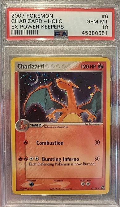 Charizard remains one of the most celebrated Pokémon in the franchise’s history. This PSA 10 GEM MINT holo from EX Power Keepers represents the tail end of the EX-era, a period known for lower print runs and competitive-driven design. Its flawless condition and dynamic artwork make it an exceptional showcase card that bridges classic nostalgia with the evolution of the modern Pokémon TCG.